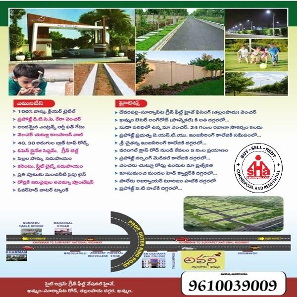 Projects is a premium DTCP & RERA approved open plots venture near Tallampadu, Khammam, thoughtfully developed for homebuyers and real estate investors looking for secure, high-growth residential plots in Khammam. Spread across a well-planned layout with 148 open plots, AVANI Projects offers the perfect combination of strategic location, modern infrastructure, Vaastu compliance, and future appreciation.